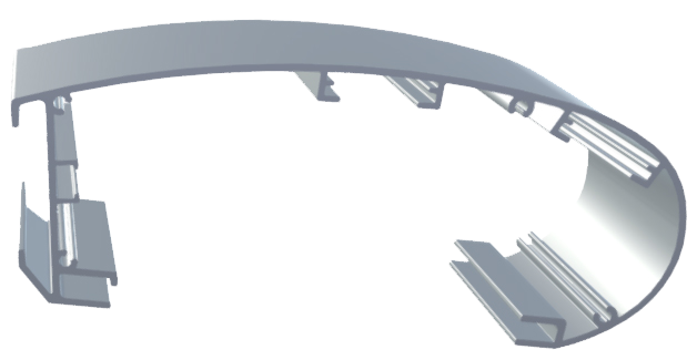 Es basiert auf gezogenen Aluminiumprofilen in der Standardlänge 5 m. Profile unterschiedlicher Länge lassen sich einfach miteinander verbinden, was in der
